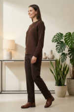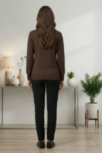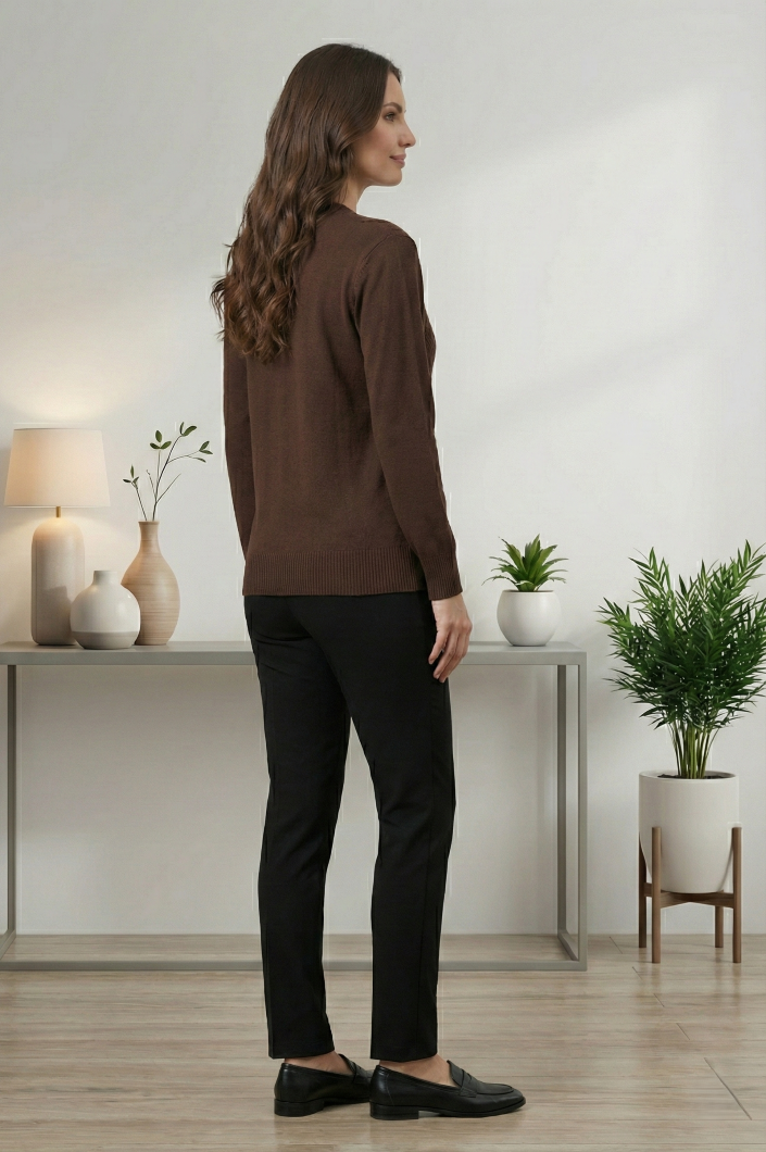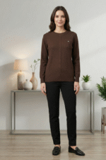 Classic brown textured pullover sweater with full sleeves for everyday office and casual wear.