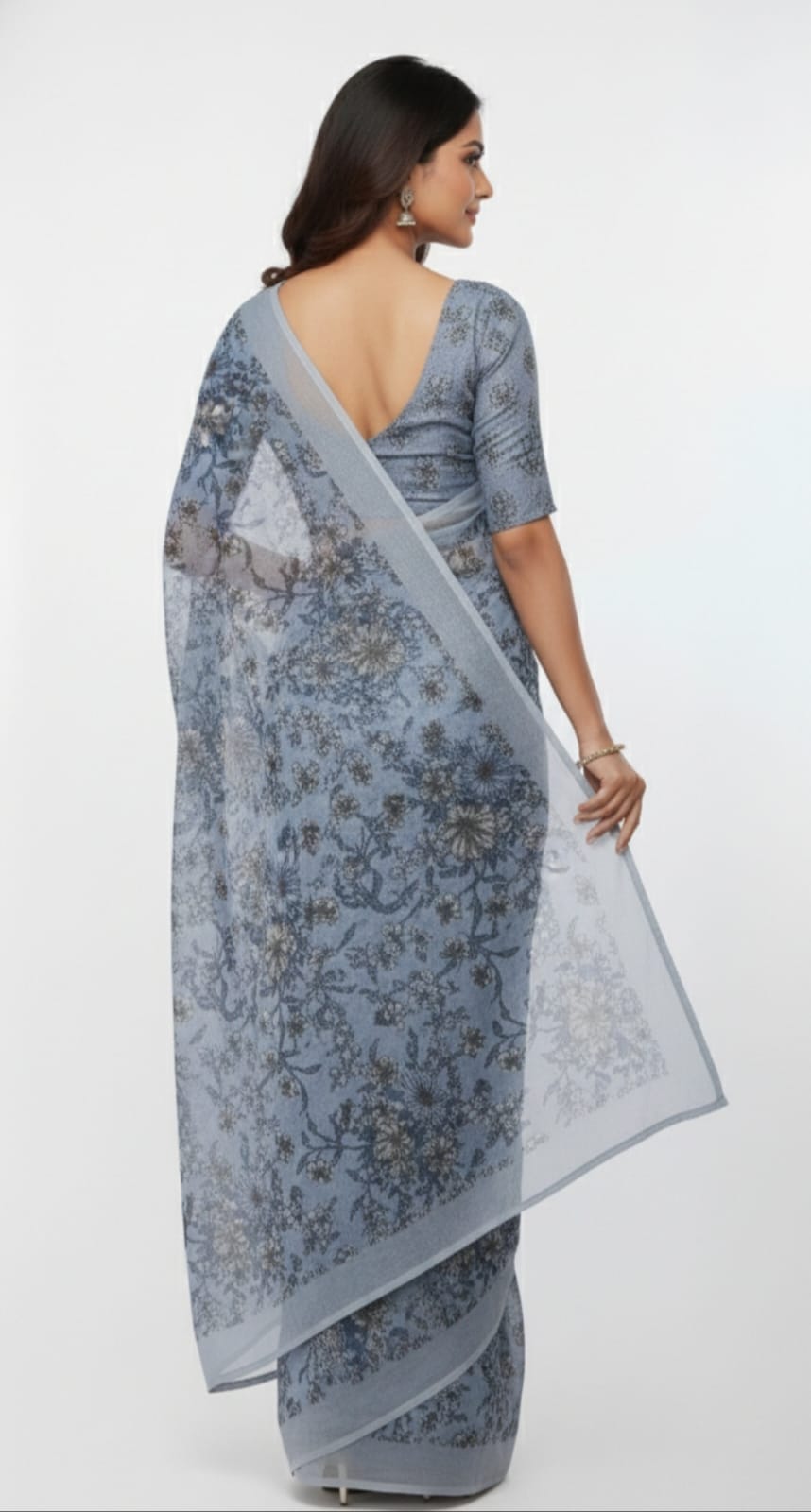 Olive green floral printed saree