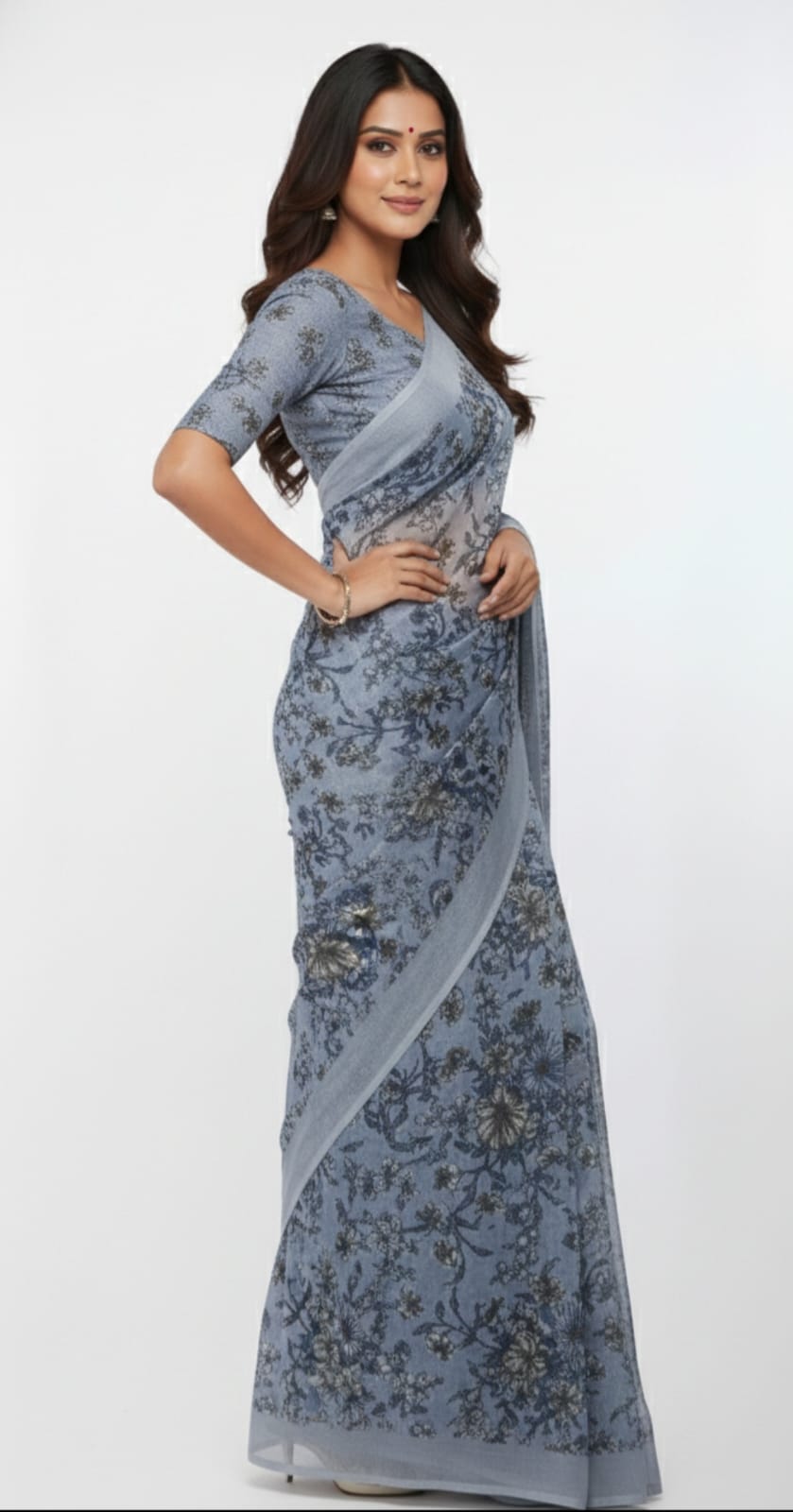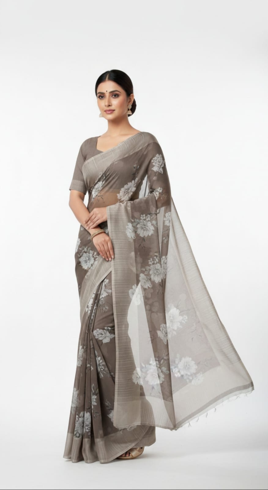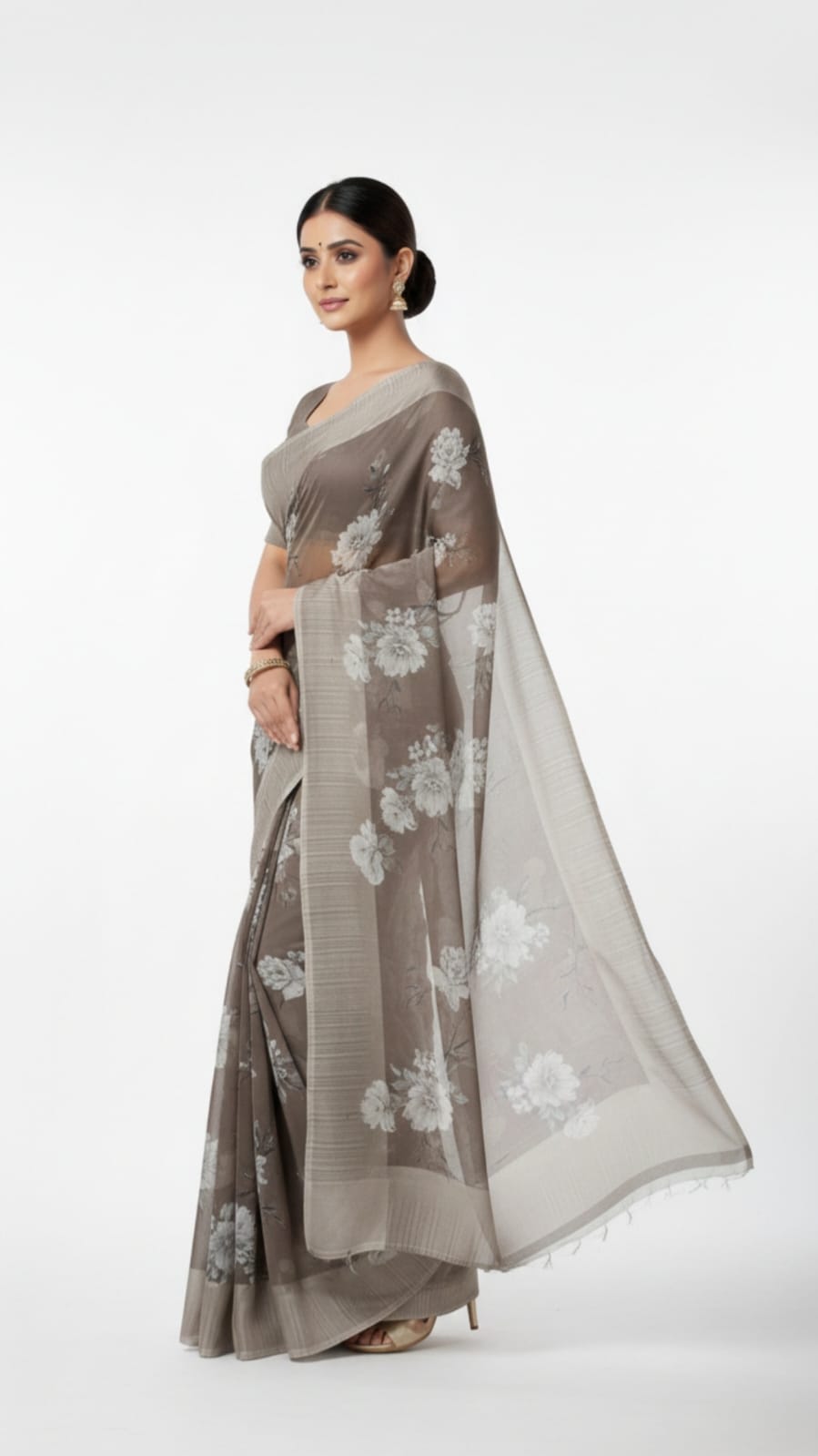 Olive green floral printed saree