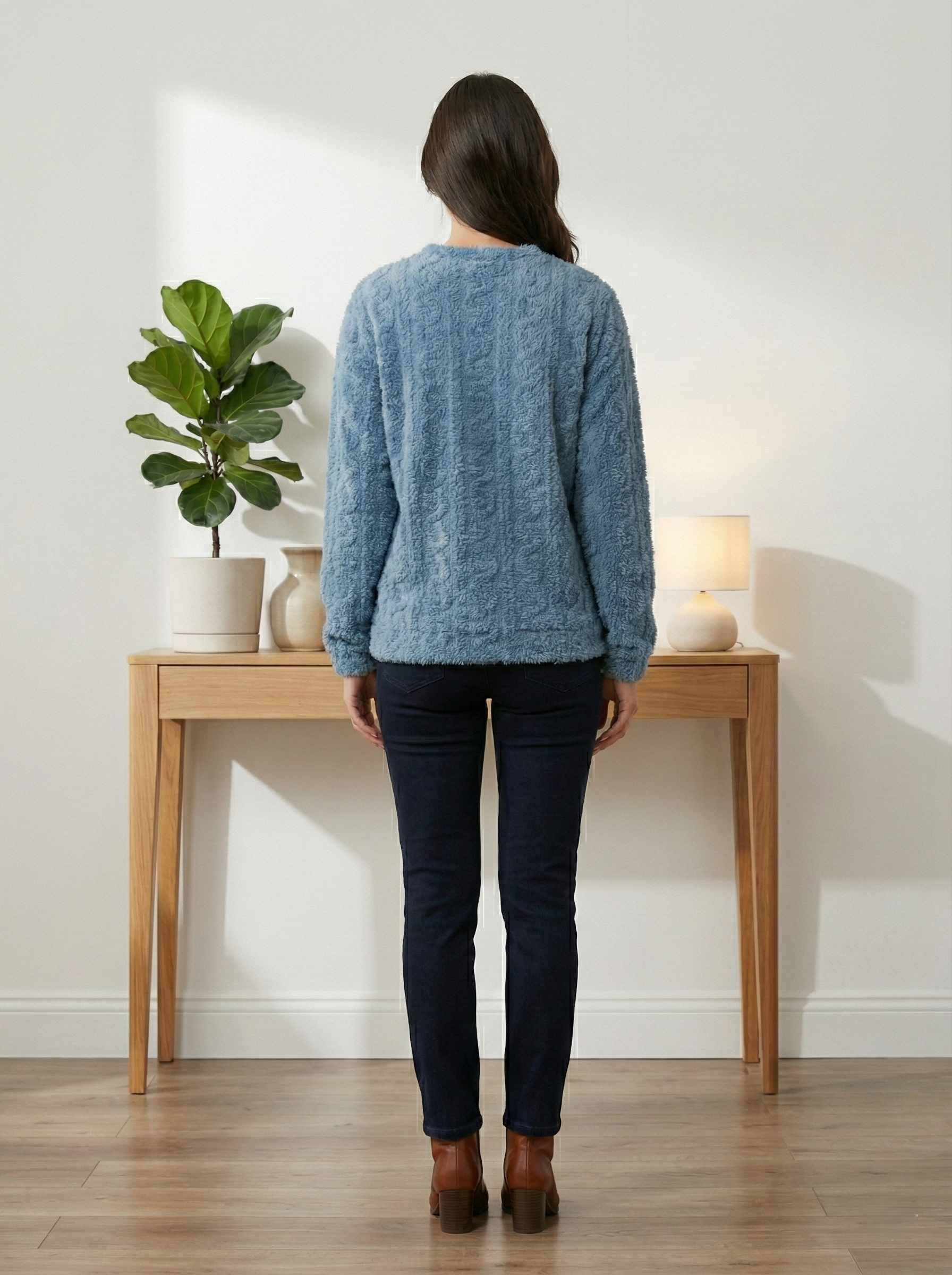 Soft plush-textured winter pullover with full sleeves for everyday warmth and comfort.